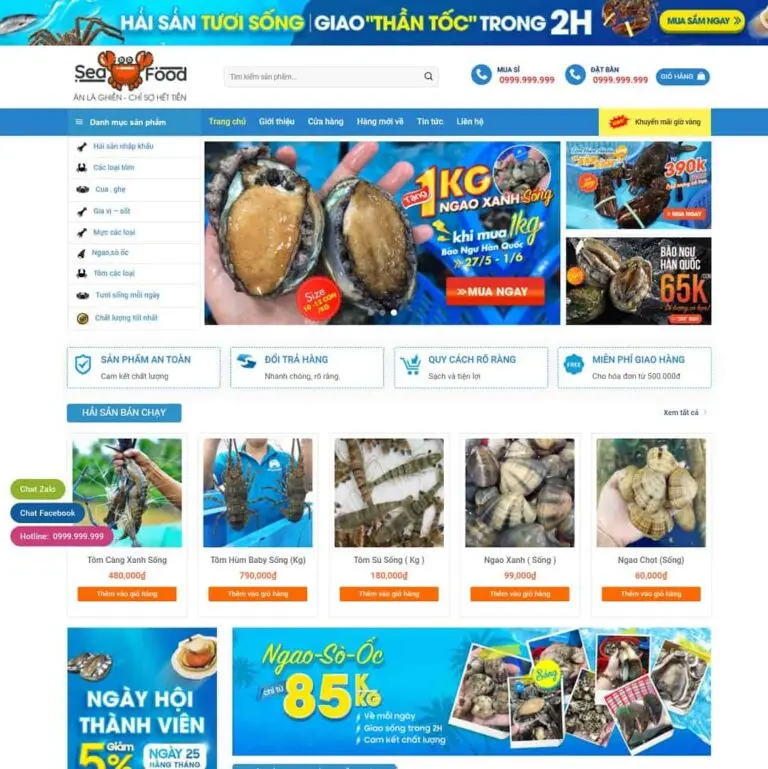 Đánh giá Mẫu Web cửa hàng bán Hải Sản